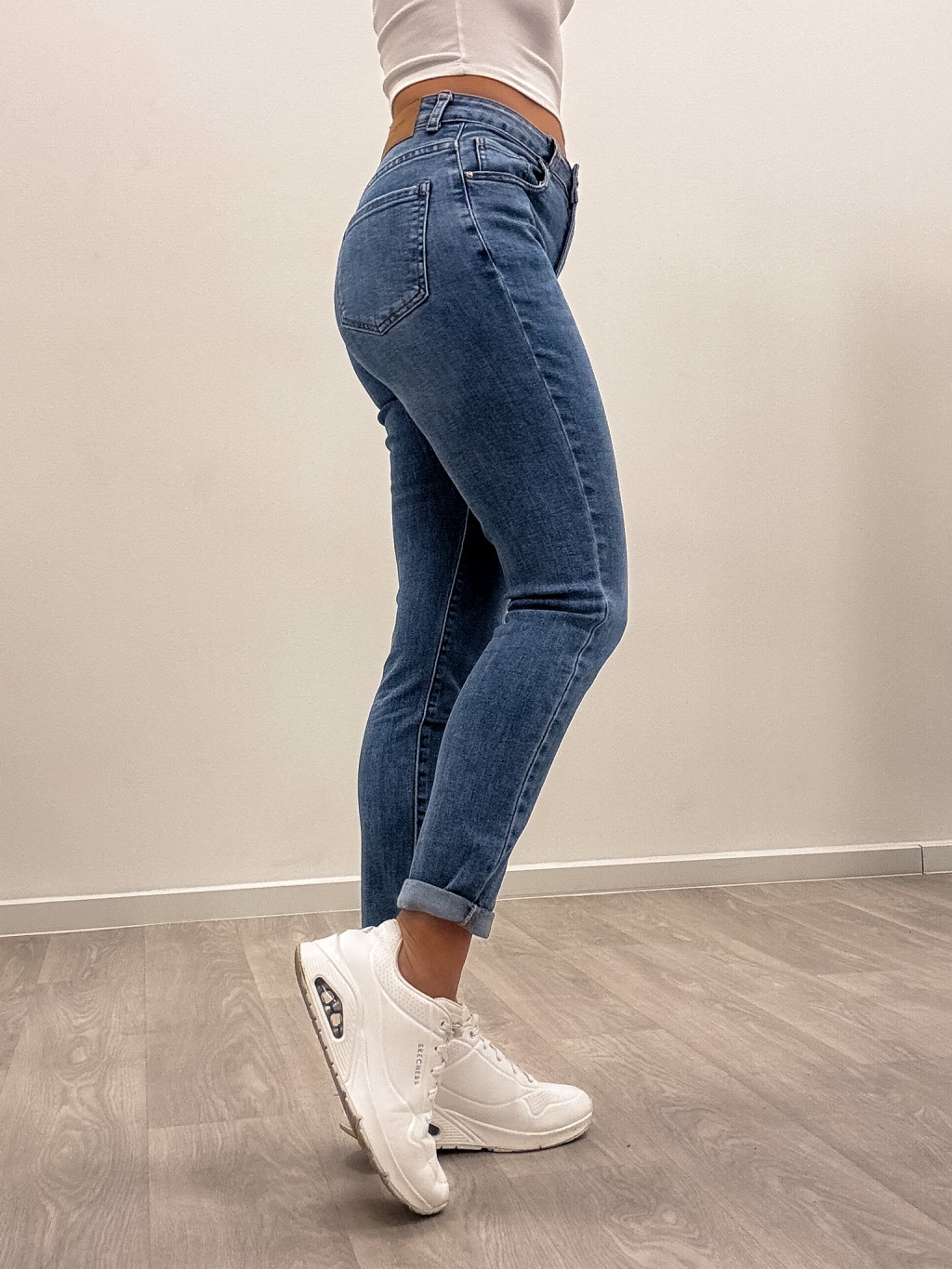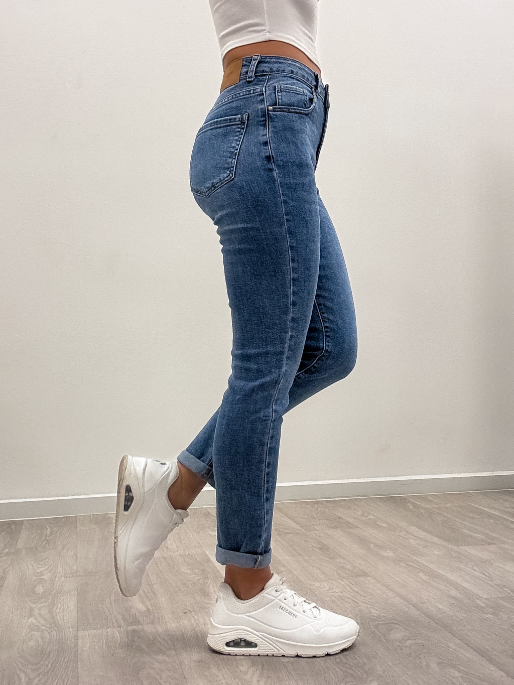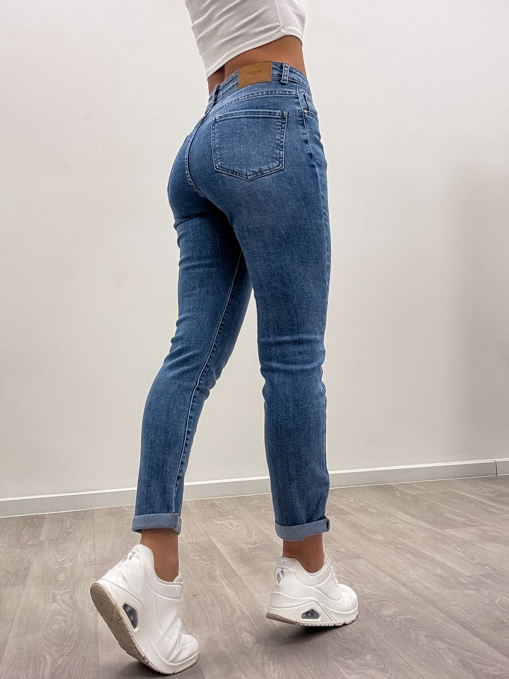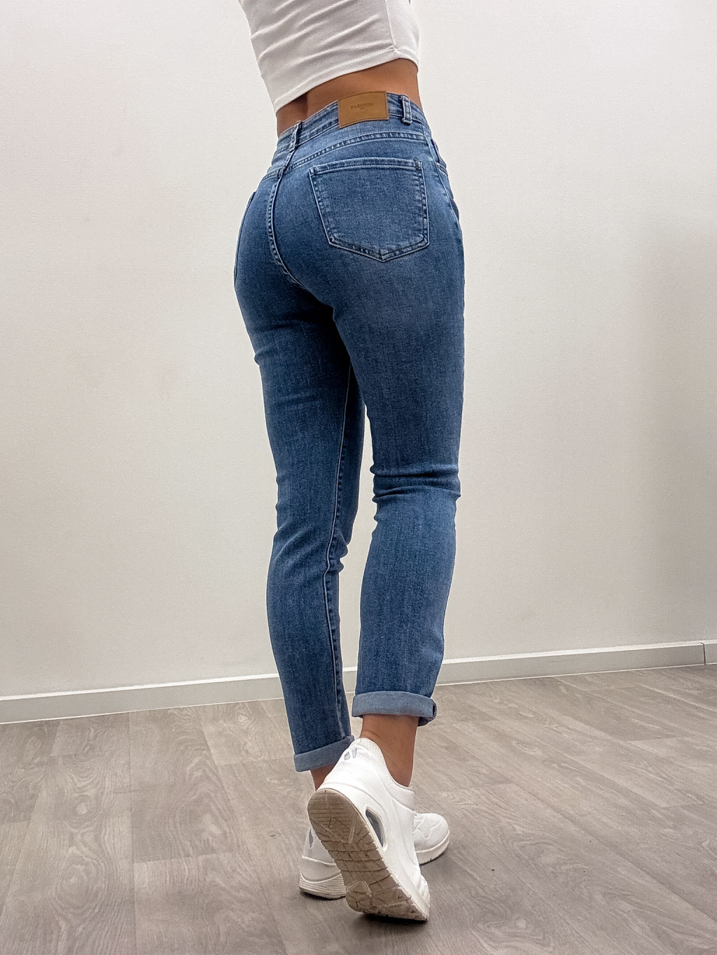 Dámské džíny boyfriend střihu, volný střih, vysoký pas, lze nosit ohrnuté, pružný a měkký materiál, velmi pohodlné. Velikosti odpovídají.