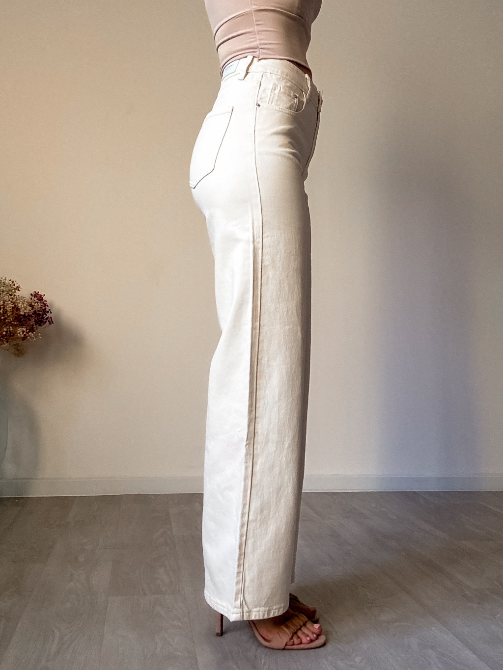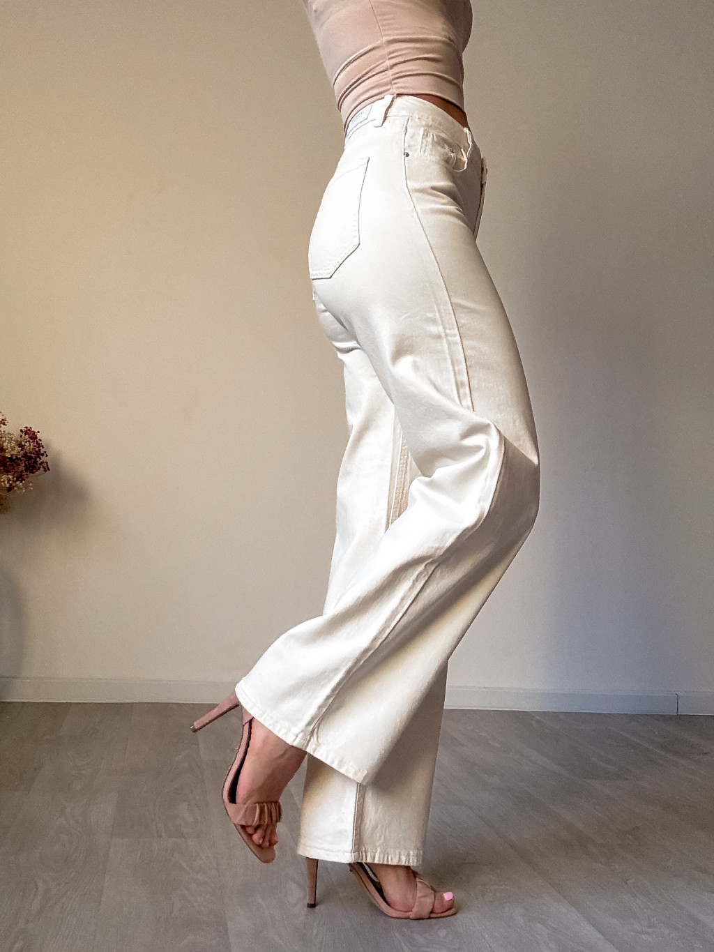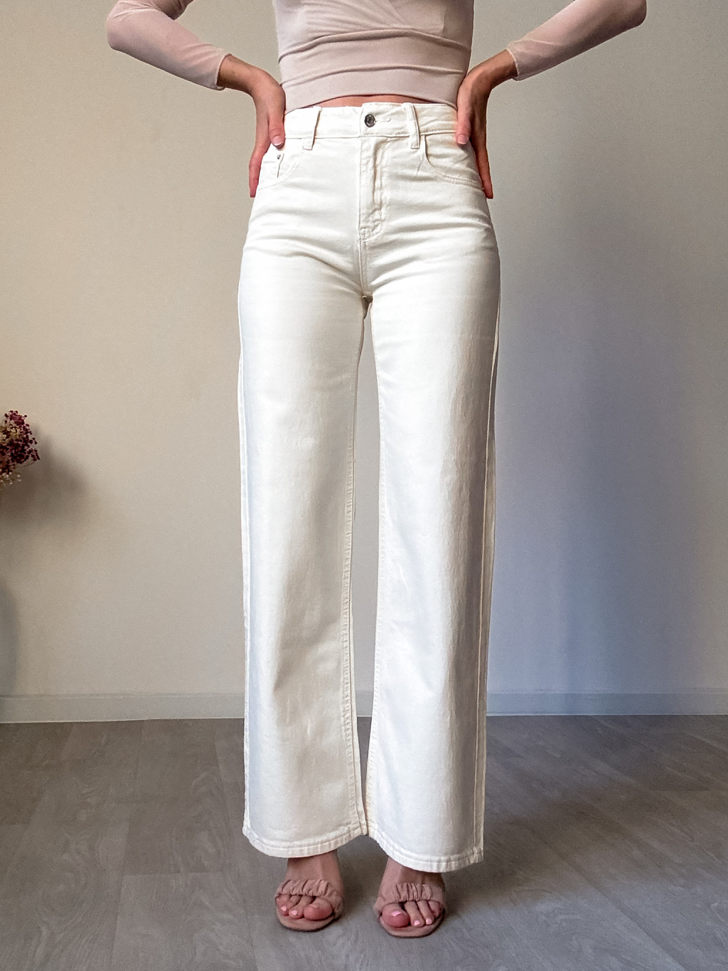 Dámské stylové džíny wide leg střihu s vyšším pasem, vepředu malé kapsičky, prodloužená délka, pružné. Velikosti odpovídají. Vel. XS - pas 2x 33 - 37 cm. Vel. S - pas 2x 35 - 39 cm. Vel. M - pas 2x 37 - 41 cm. Vel. L - pas 2x 39 - 43 cm. Vel. XL - pas 2x 41 - 45 cm. Délka 110 cm (měřeno u...