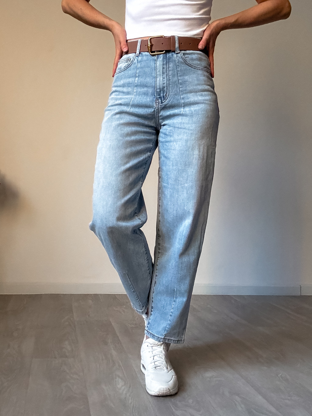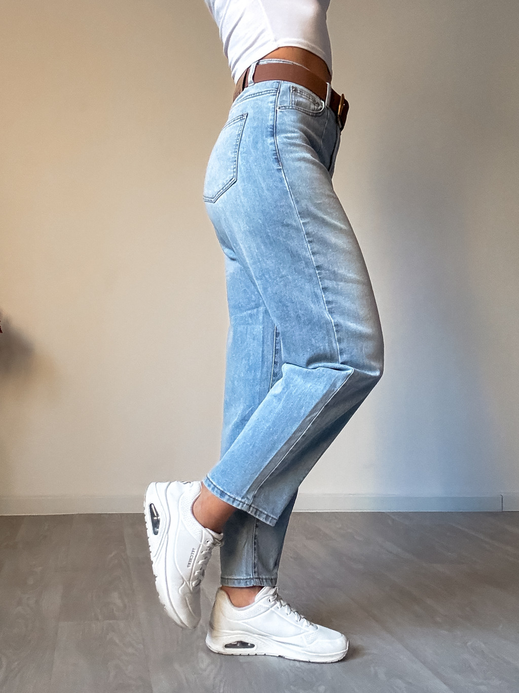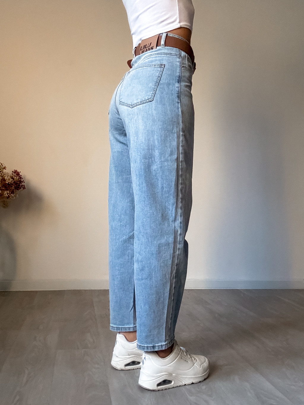 Dámské džíny volného střihu s vysokým pasem, v pase a přes boky uplé, velmi pružné a měkké, ideální kombinovat s crop topem či svetříkem do pasu. Velikosti odpovídají. Vel. XS - pas 2x 31 - 36 cm. Vel. S - pas 2x 33 - 38 cm. Vel. M - pas 2x 35 - 40 cm. Vel. L - pas 2x 37 - 42 cm. Vel. XL -...