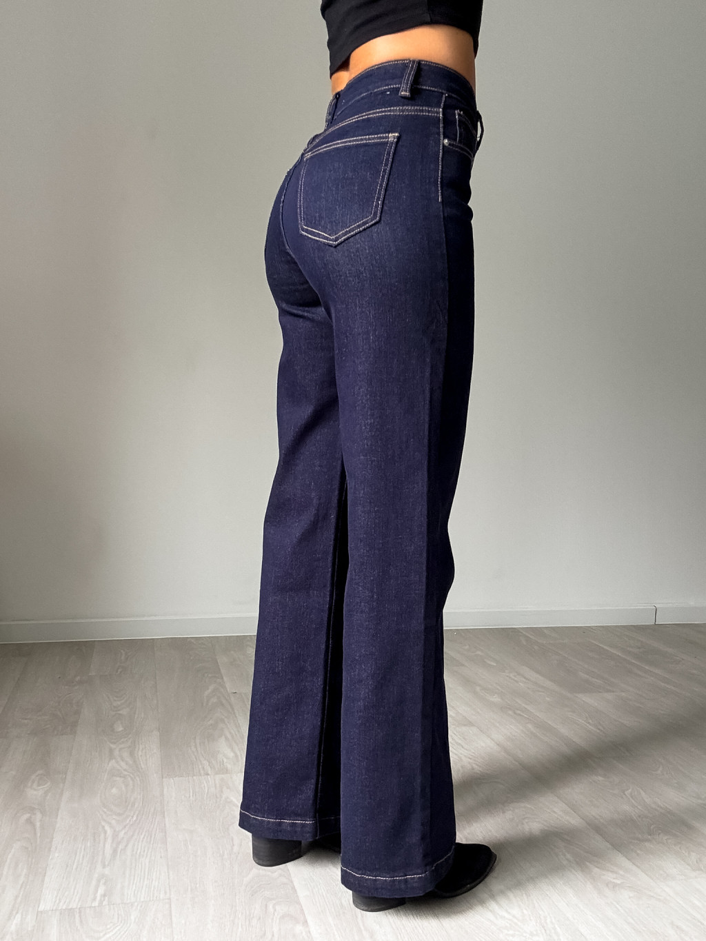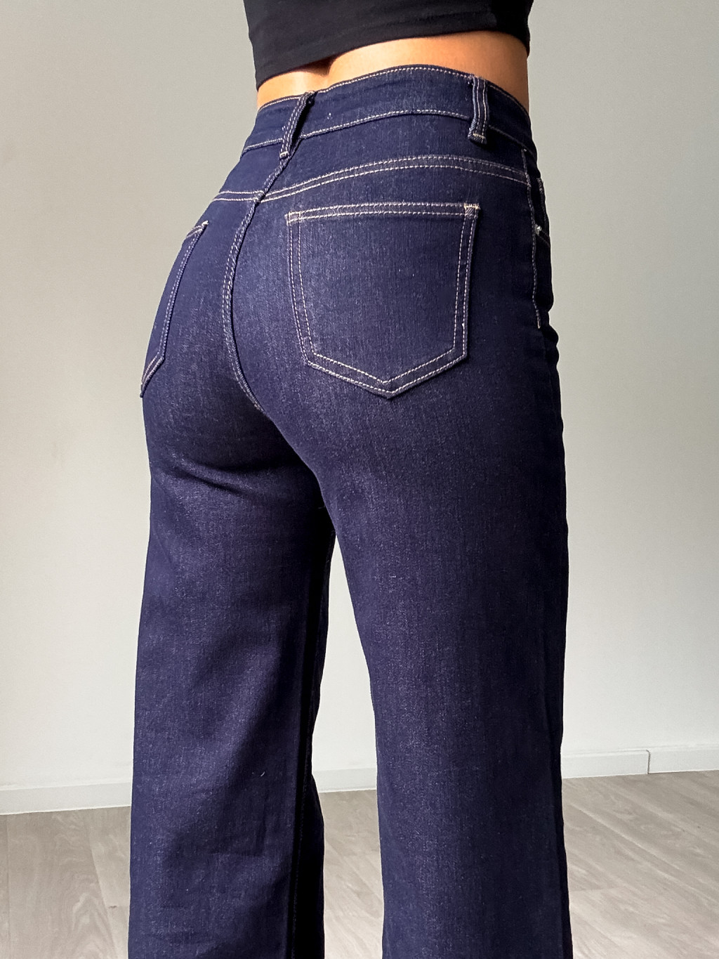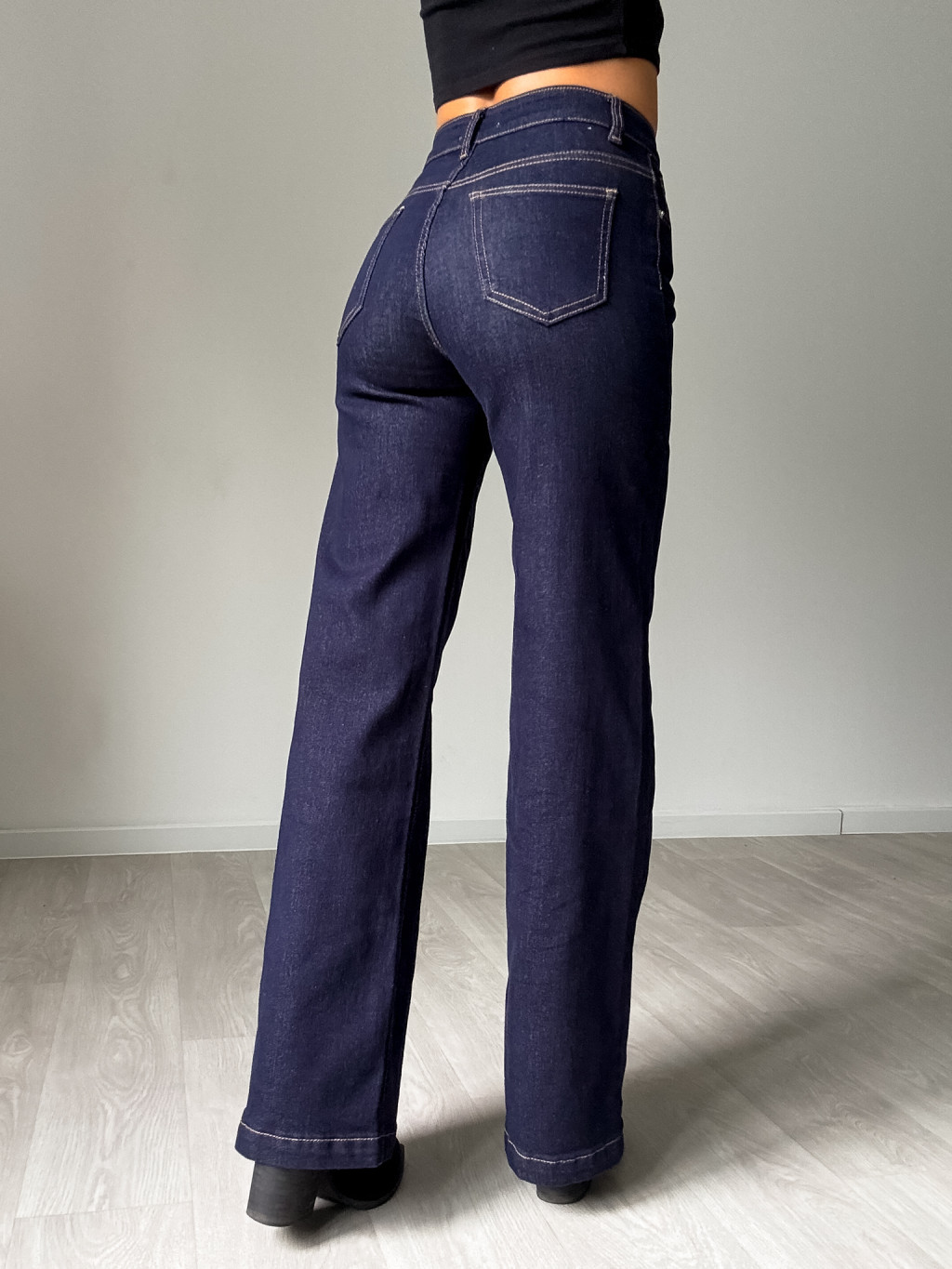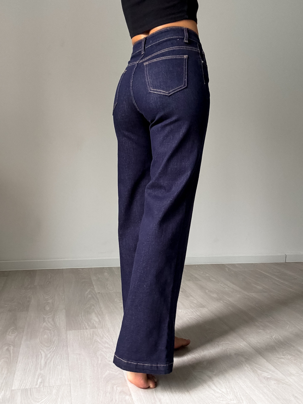 Dámské stylové džíny tmavě modré barvy, středně vysoký pas, jemně pružné. Velikosti odpovídají.