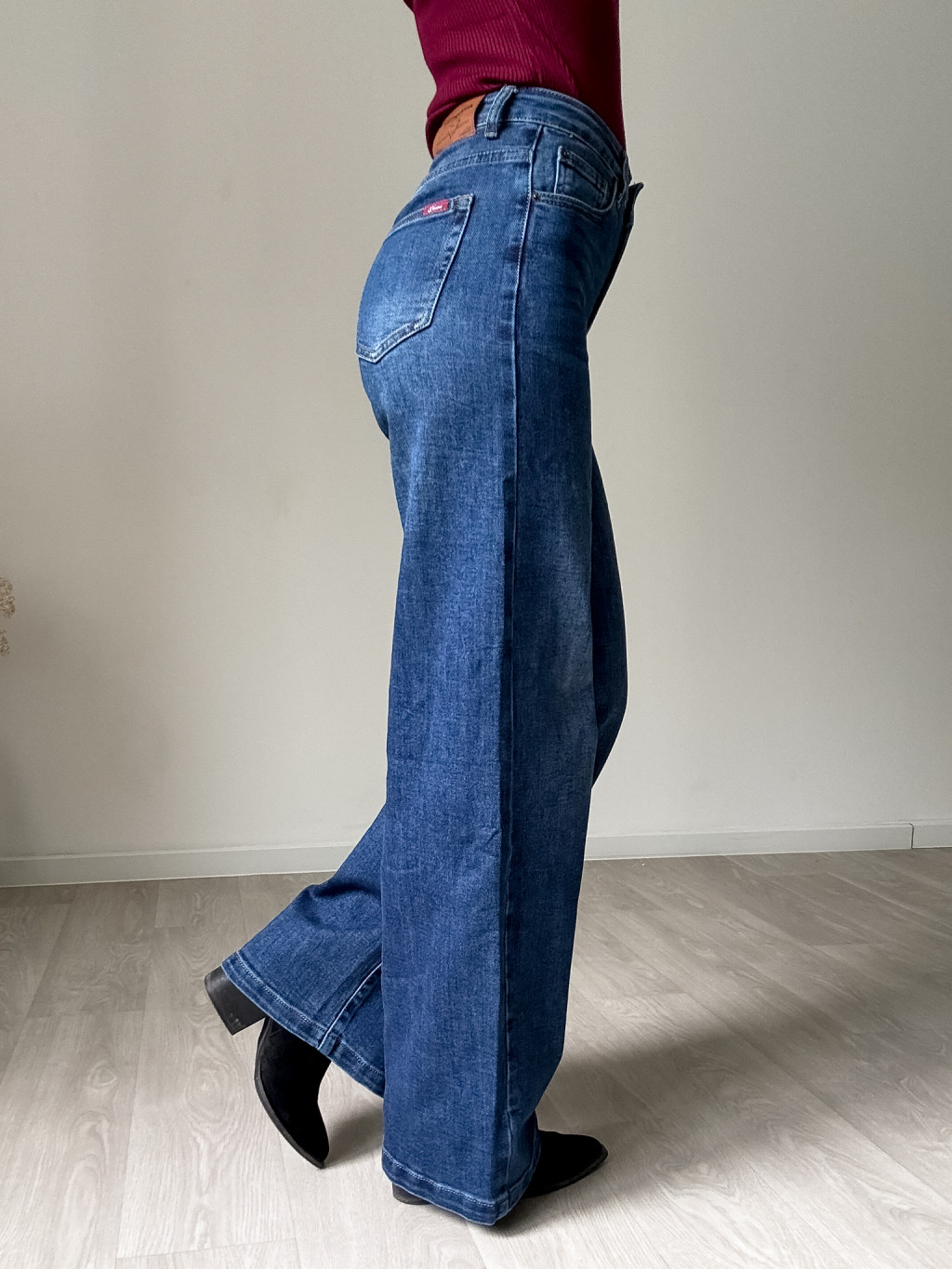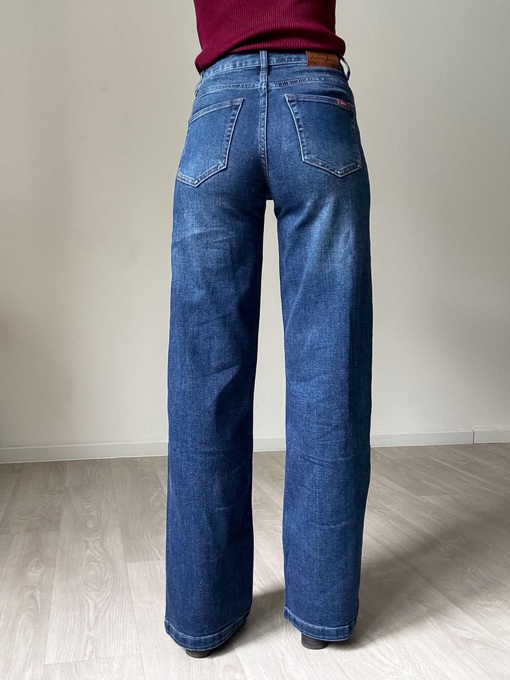 Dámské stylové džíny tmavě modré barvy, středně vysoký pas, jemně pružné. V případě, že váháte mezi 2 velikostmi, doporučujeme vzít tu menší.