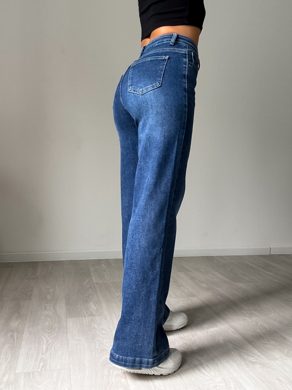Dámské stylové džíny tmavě modré barvy, vyšší pas, velmi pružné a měkké. Velikosti odpovídají.