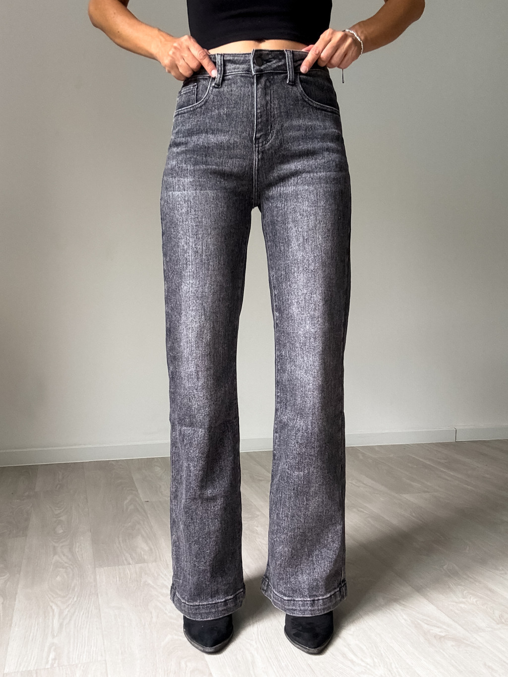Tmavě šedé široké džíny Tina