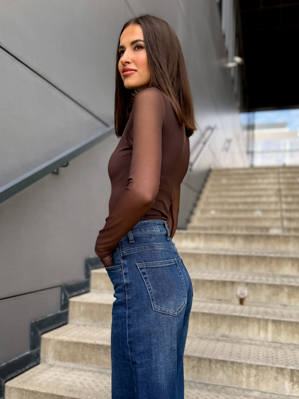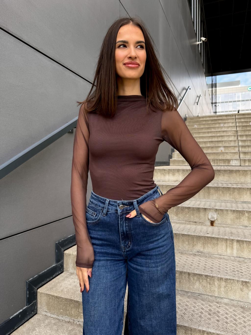 Elegantní dámské tričko s lehkým stojáčkem u krku, krásně sedí a drží tvar díky podšití po celé délce, tylové rukávy, velmi pružné, velikosti odpovídají.