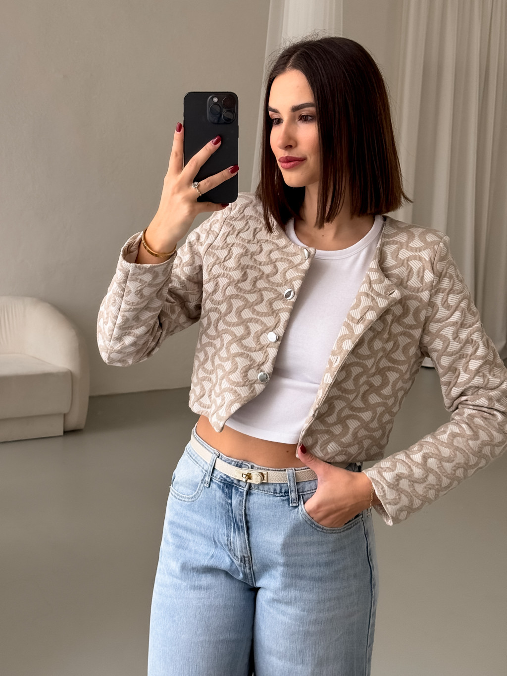 Elegantní dámský kabátek/bomber do pasu, zapínání na knoflíčky, s podšívkou, nepružný. Vel. unisize - sedí na S a M.