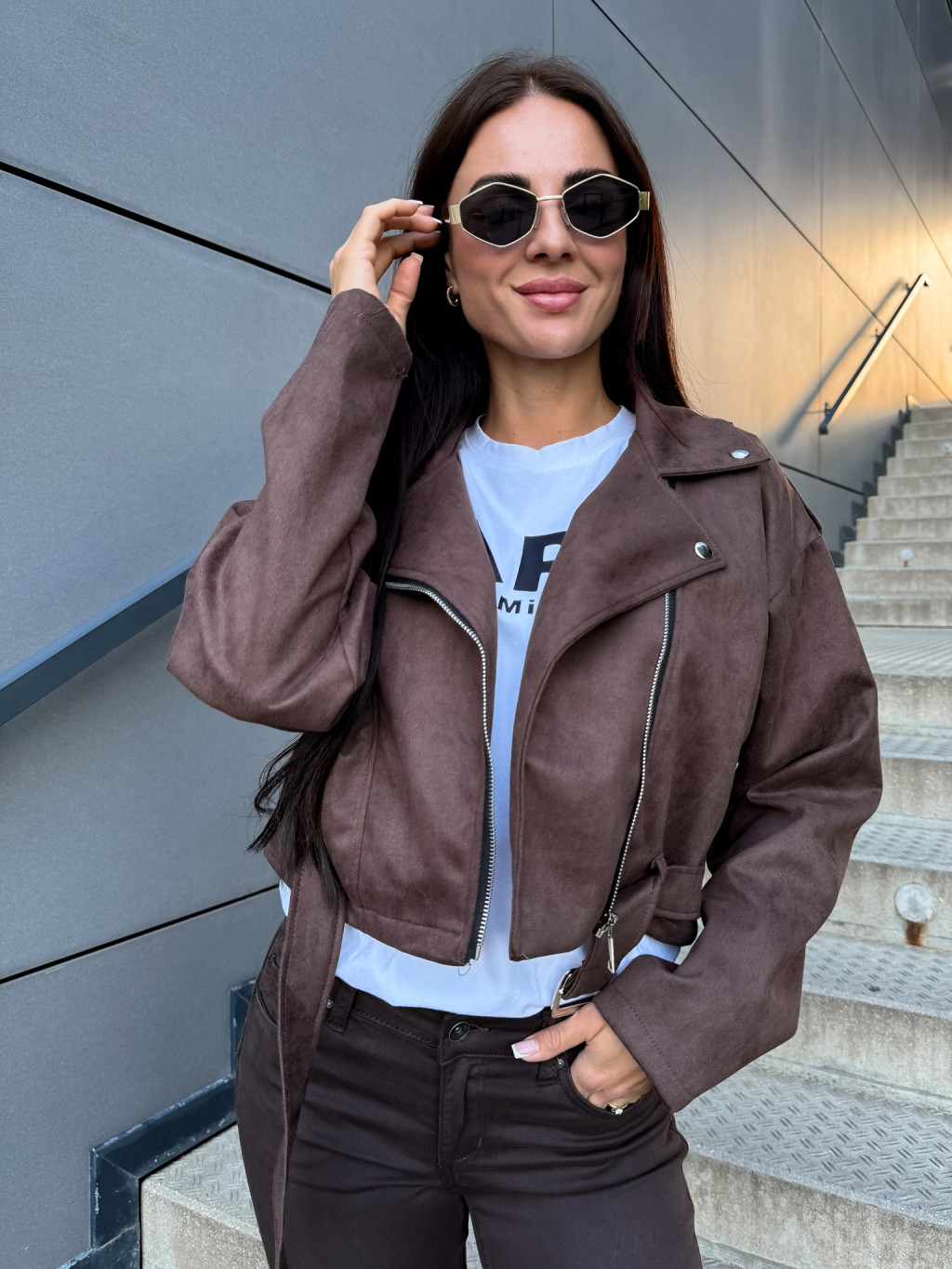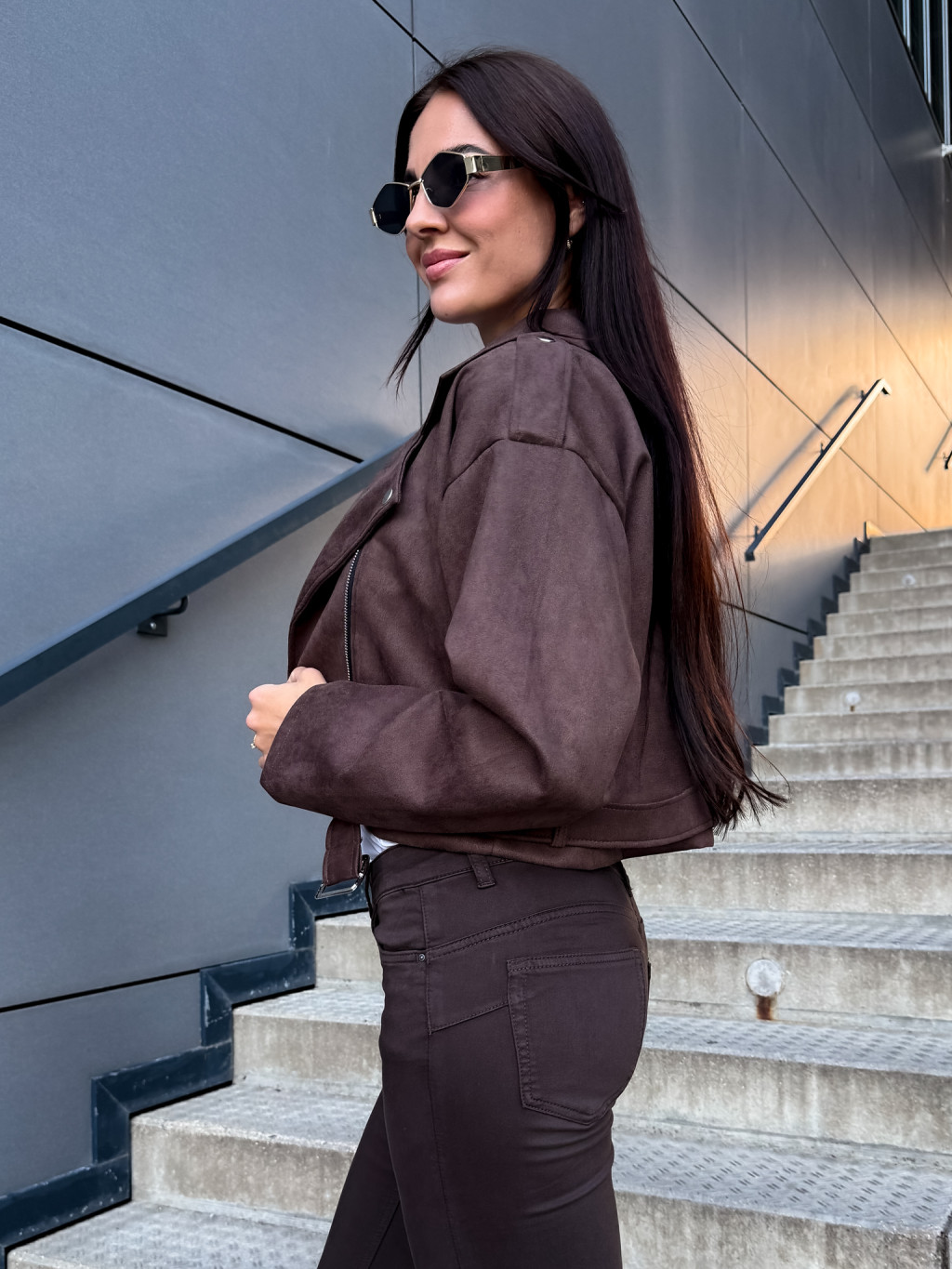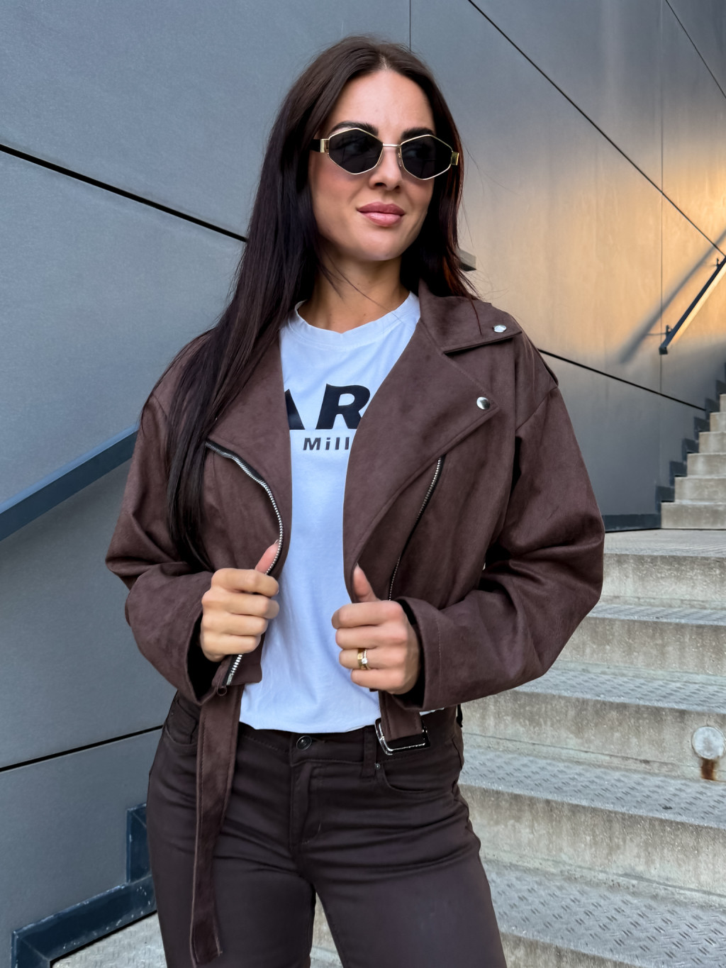 Elegantní dámský křivák do pasu, imitace broušené kůže, bez podšívky, volnější střih, vel. unisize - sedí na S/M/menší L.