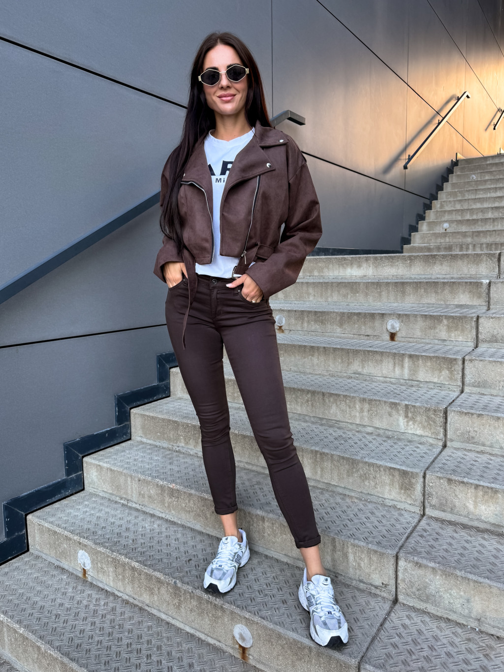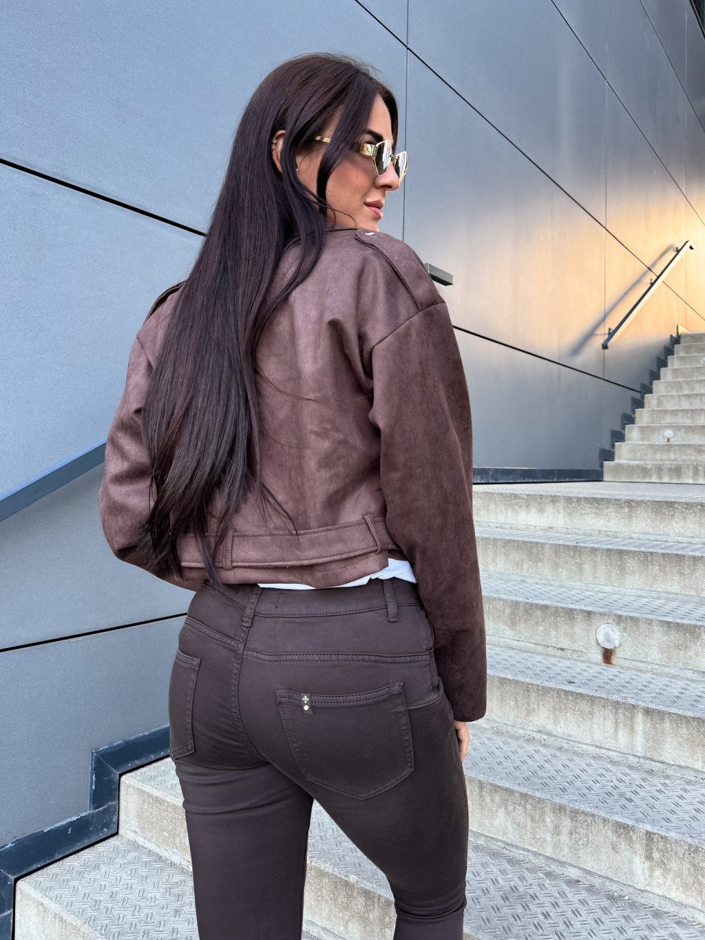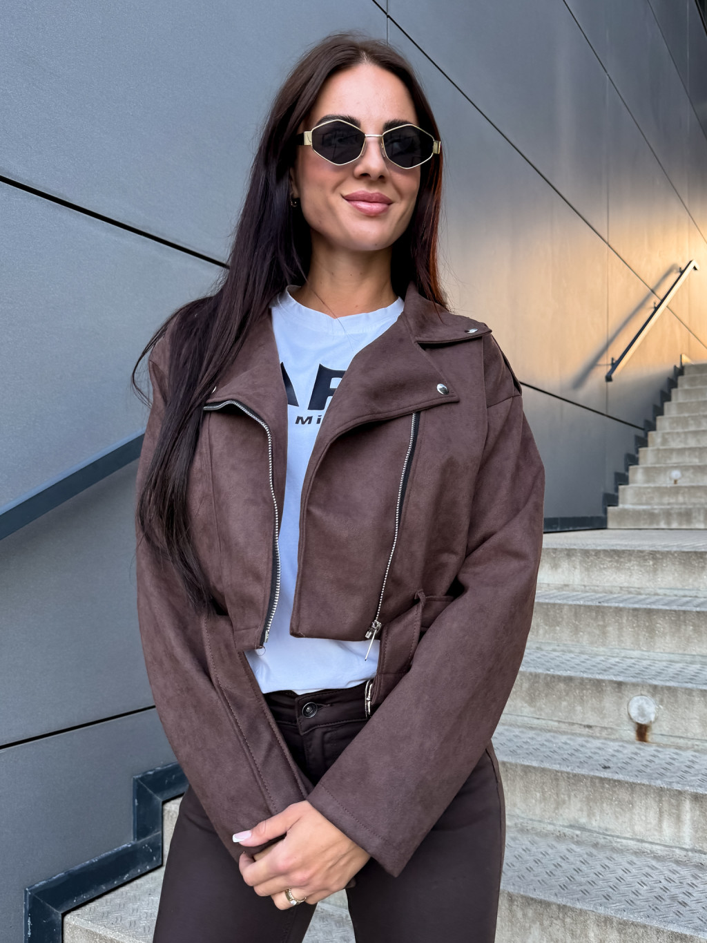 Elegantní dámský křivák do pasu, imitace broušené kůže, bez podšívky, volnější střih, vel. unisize - sedí na S/M/menší L.