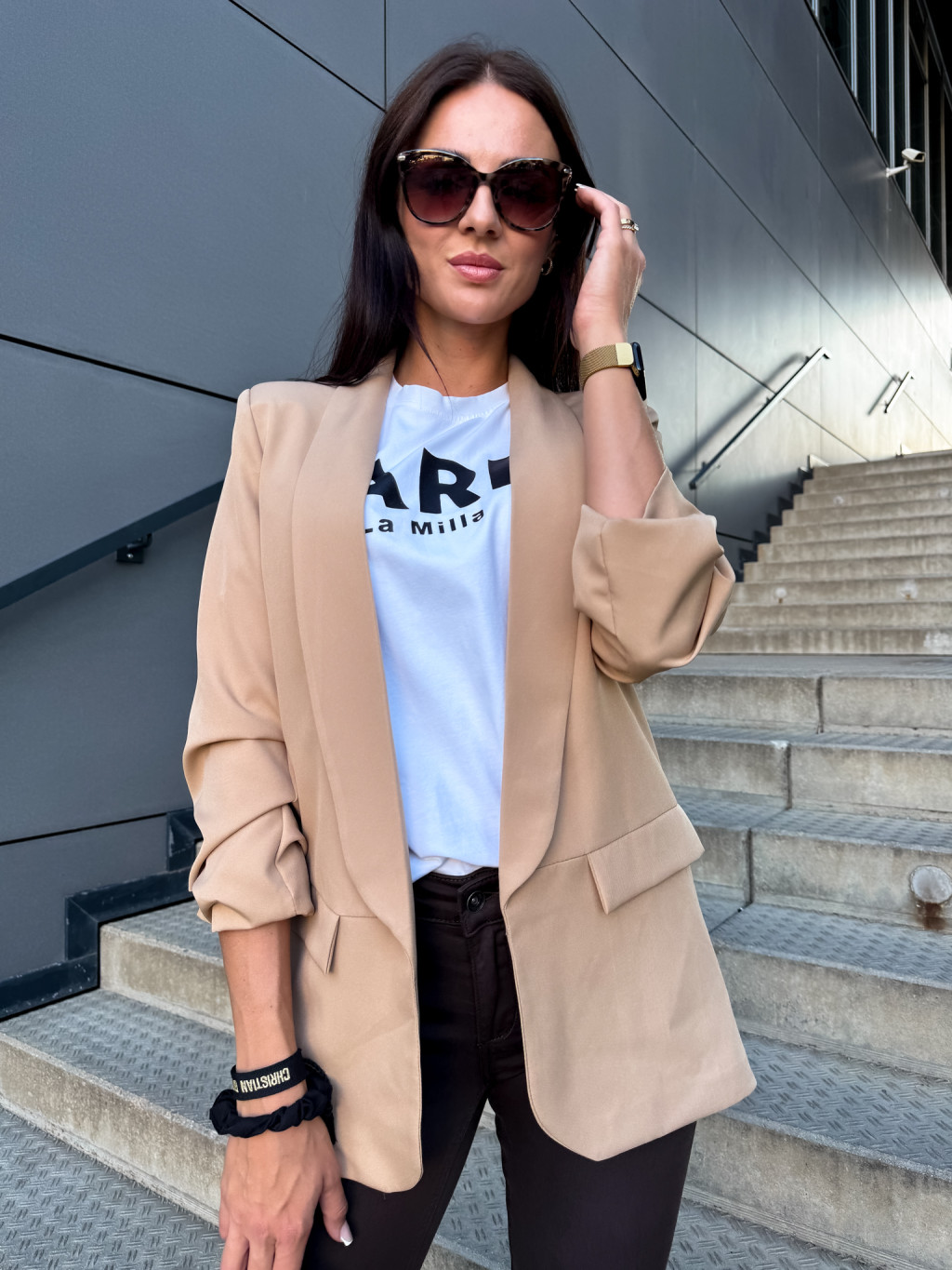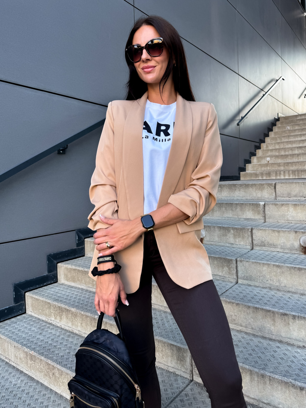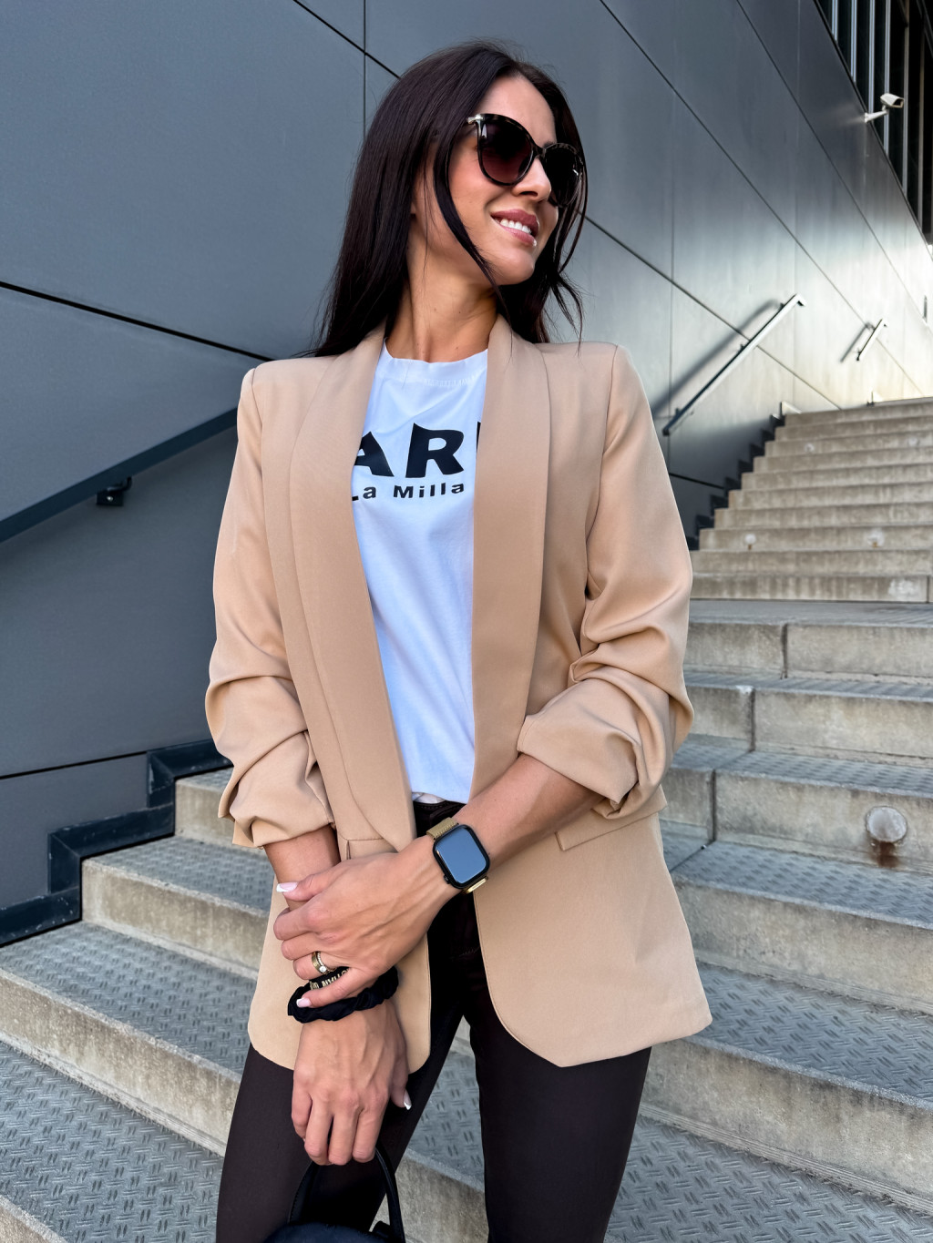 Elegantní a zároveň sportovní dámské sako bez zapínání, s podšívkou, nařasené rukávy. Vel. unisize - sedí do vel. M/L.