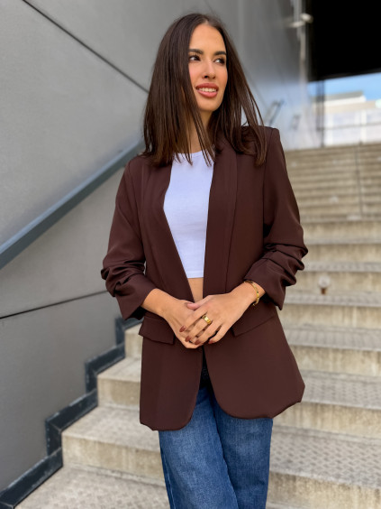 Elegantní a zároveň sportovní dámské sako bez zapínání, s podšívkou, nařasené rukávy. Vel. unisize - sedí do vel. M/L. Délka 71 cm. Výška modelky 170 cm. Materiál: 95% polyester, 5% elasten.