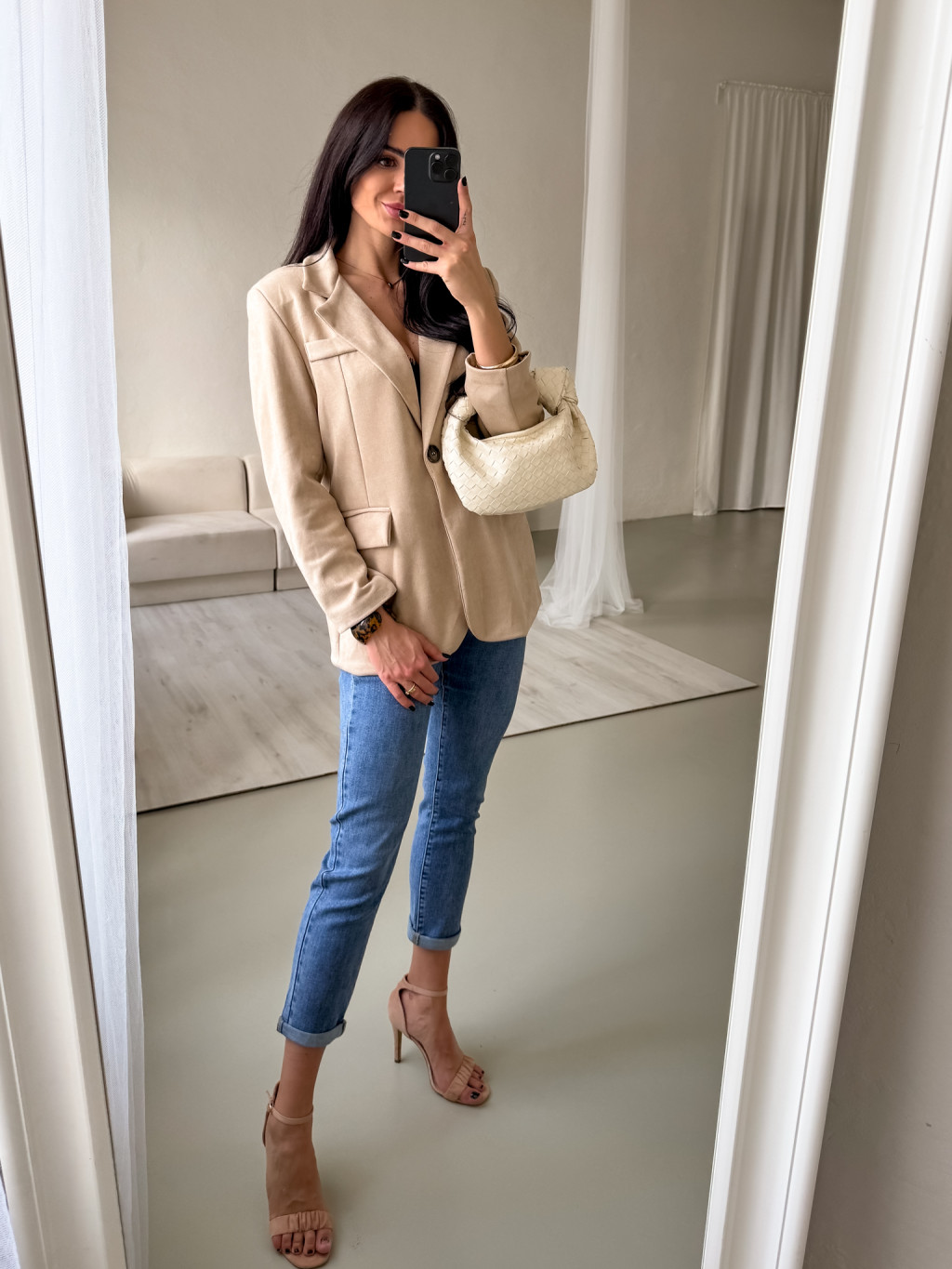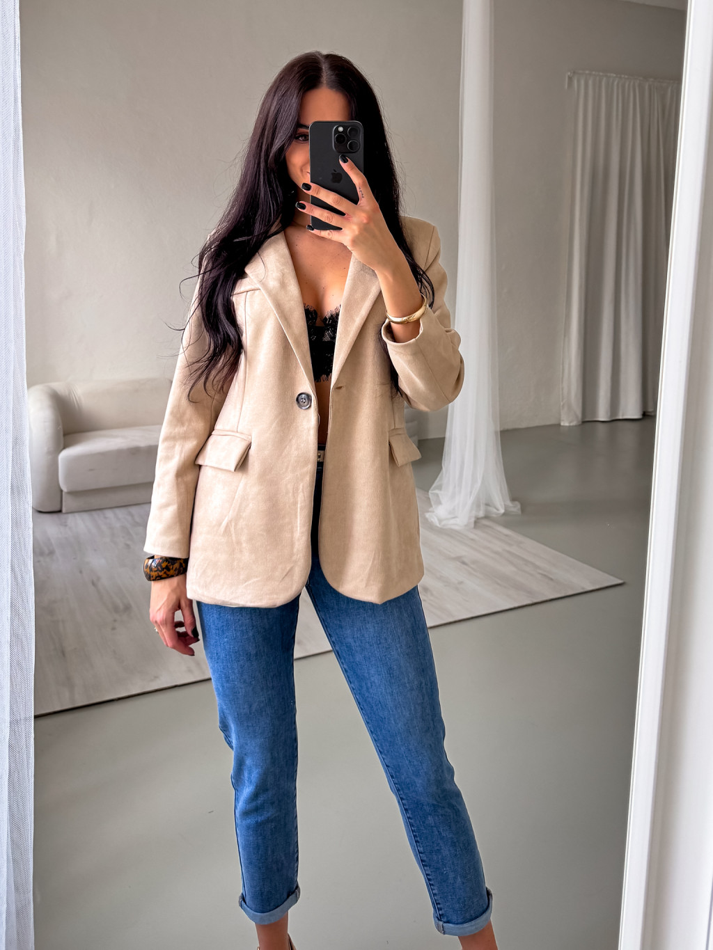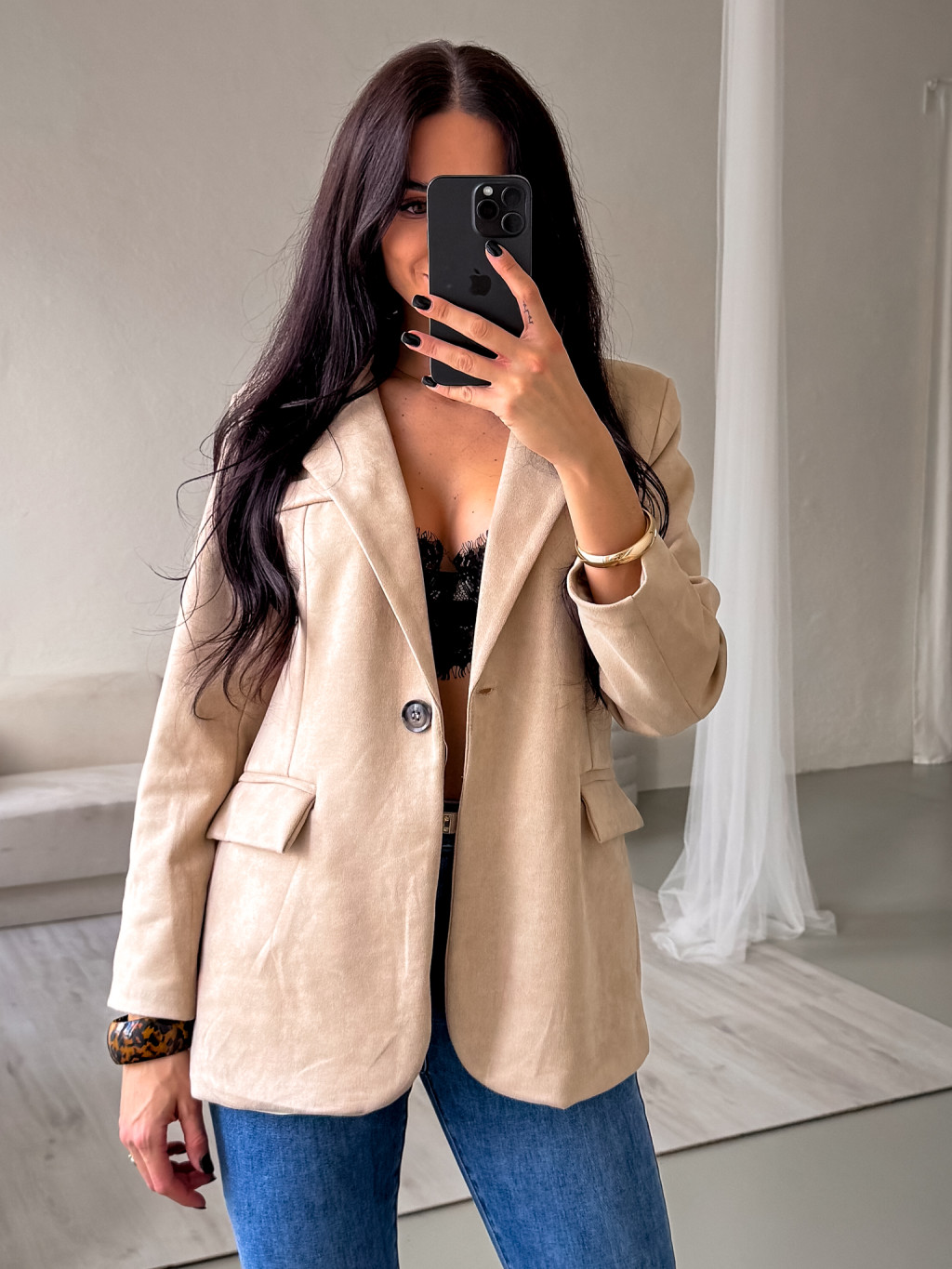 Velurové sako krémové