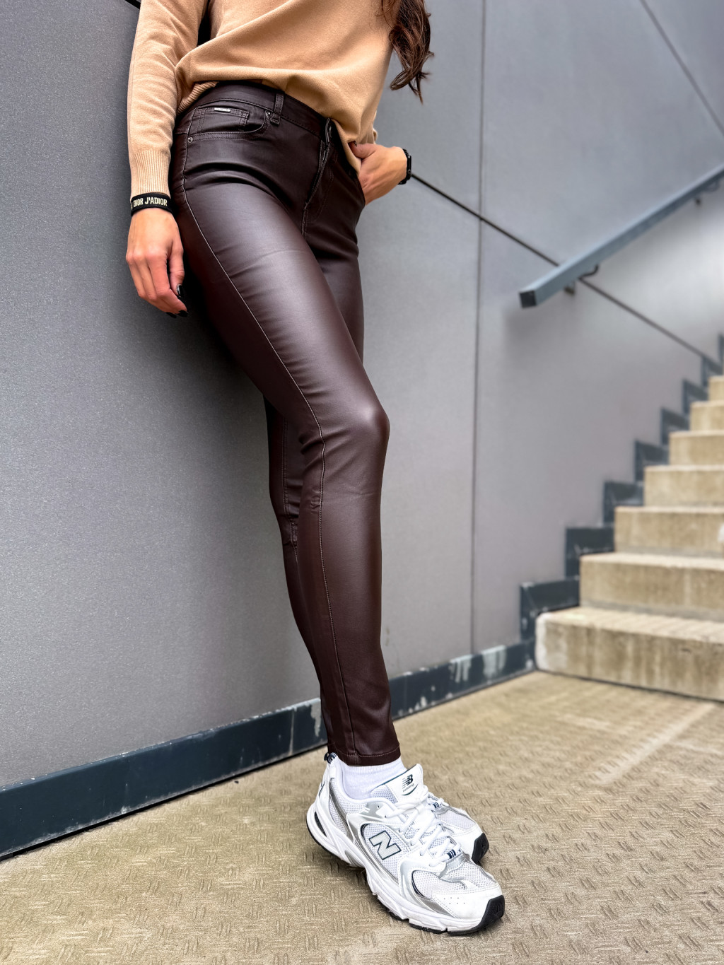 Dámské koženkové kalhoty s push-up efektem, prodloužená délka, pružné, velmi příjemné, středně vysoký pas. Velikosti odpovídají.