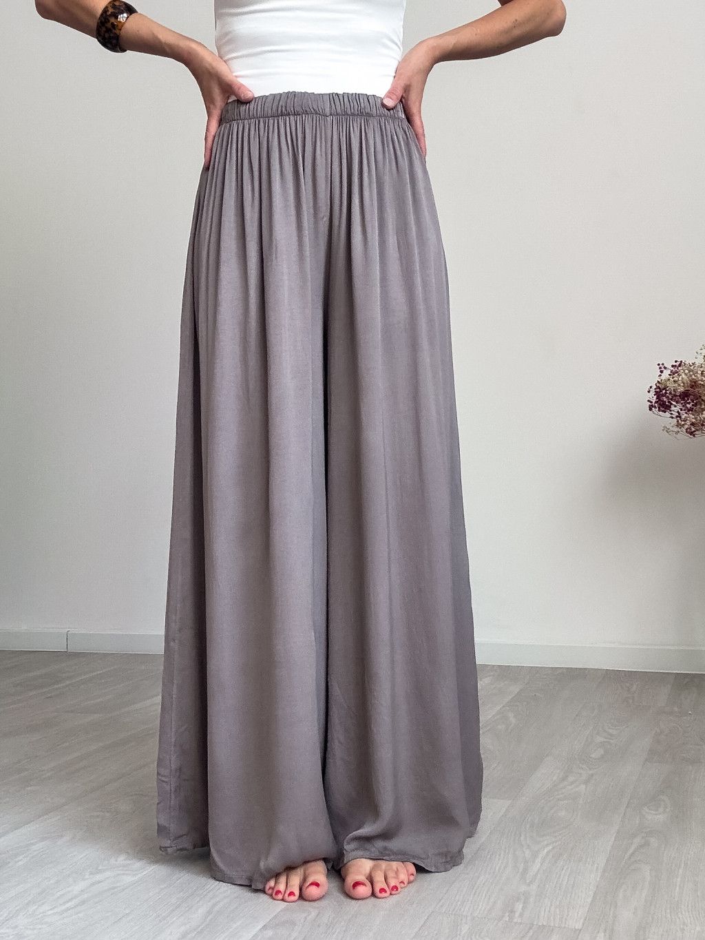Dámské široké kalhoty v pase na gumu, lehký a vzdušný materiál, 100% viskoza. Díky gumě v pase sedí na S - XL.