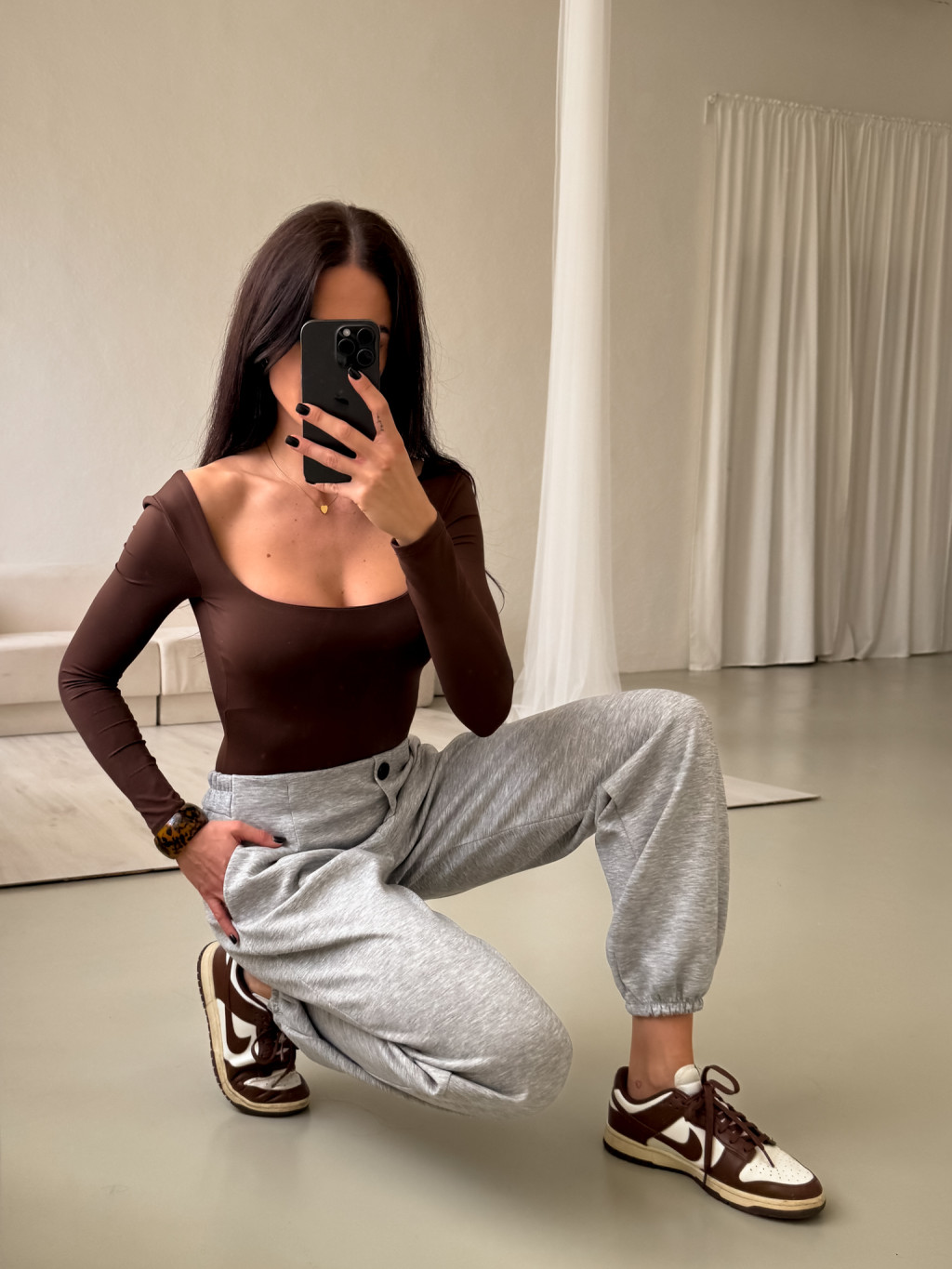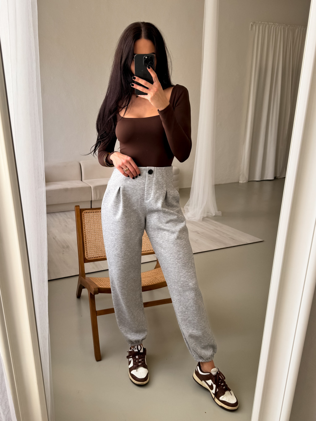 Dámské sportovní kalhoty v pase na gumu, na bocích kapsy, nabírané nohavice zakončené gumičkou, velmi pružné. Vel. unisize - sedí na S/M/L.