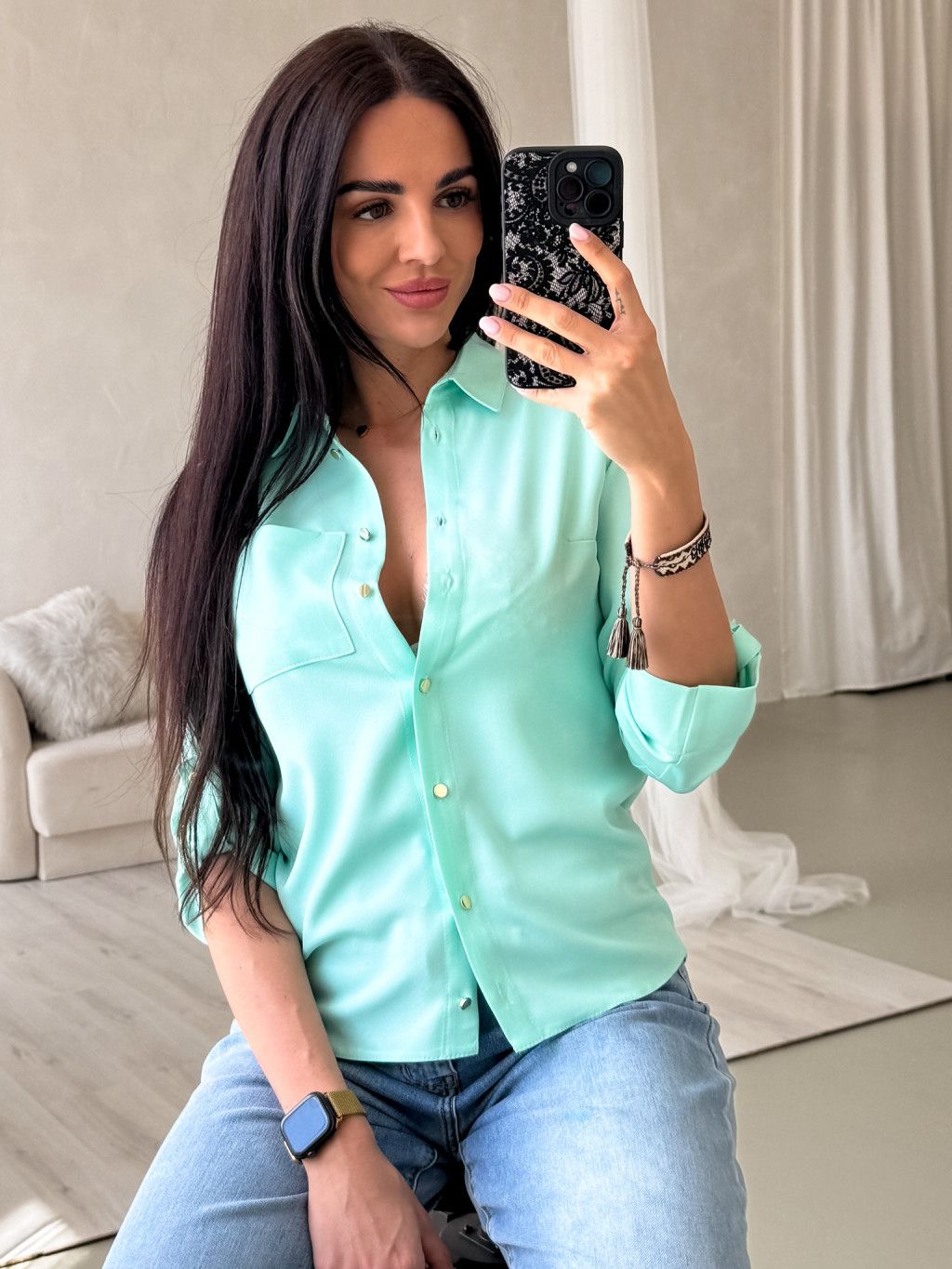 Elegantní dámská košile, zapínání na zlaté knoflíčky, 3/4 rukávy. Velikosti odpovídají.