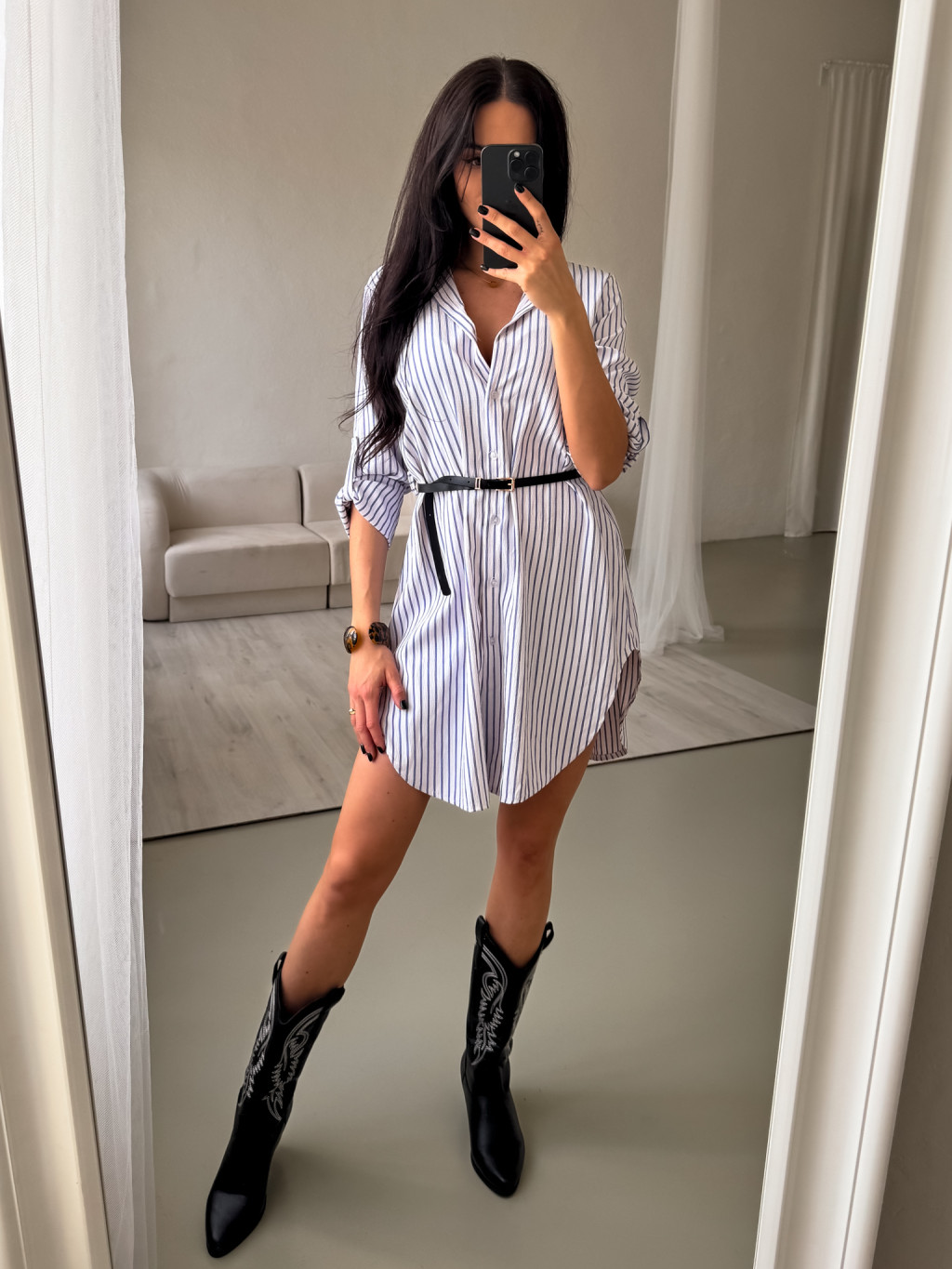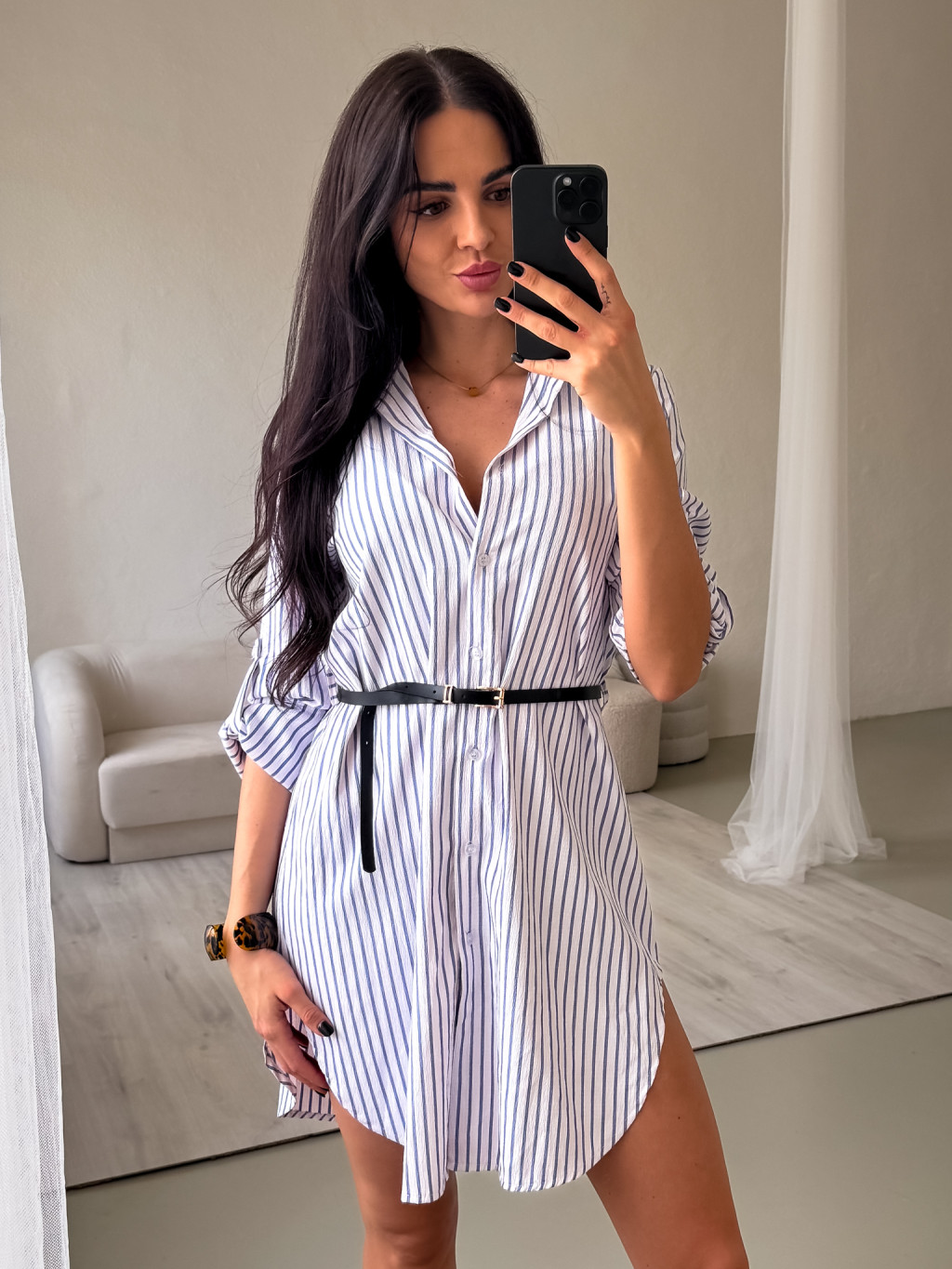 Elegantní dámské šaty košilového střihu, na bocích vykrojené, zapínání na knoflíčky, nepružné, neprůhledné, vel. unisize - sedí na S a M.