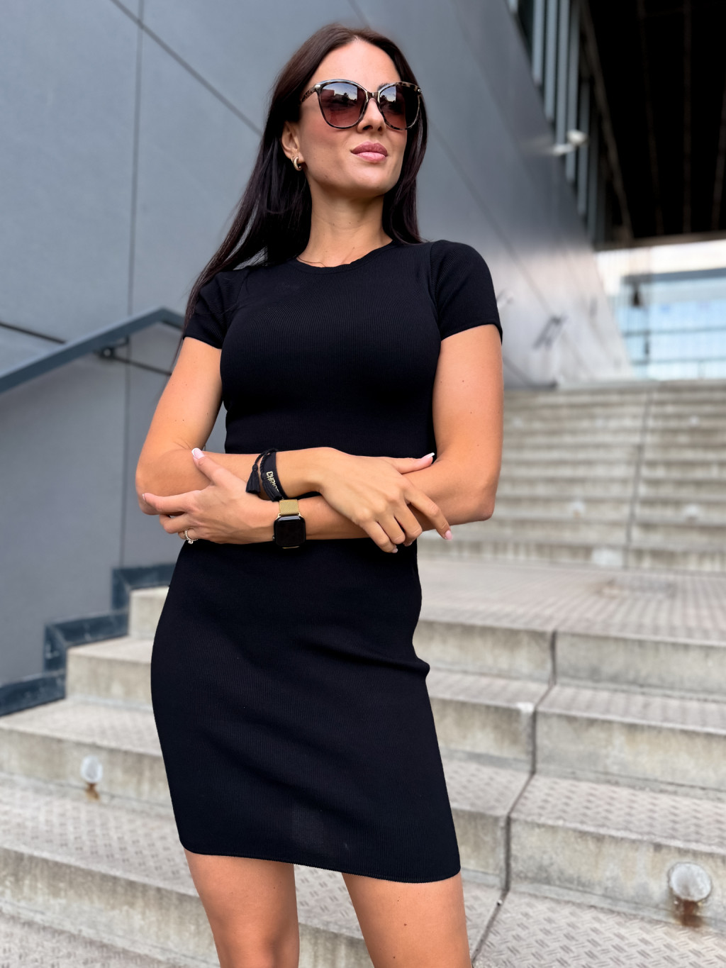 Elegantní dámské šaty z teplého úpletu, krátký rukáv, pružné. Vel. unisize - sedí na XS, S a M.