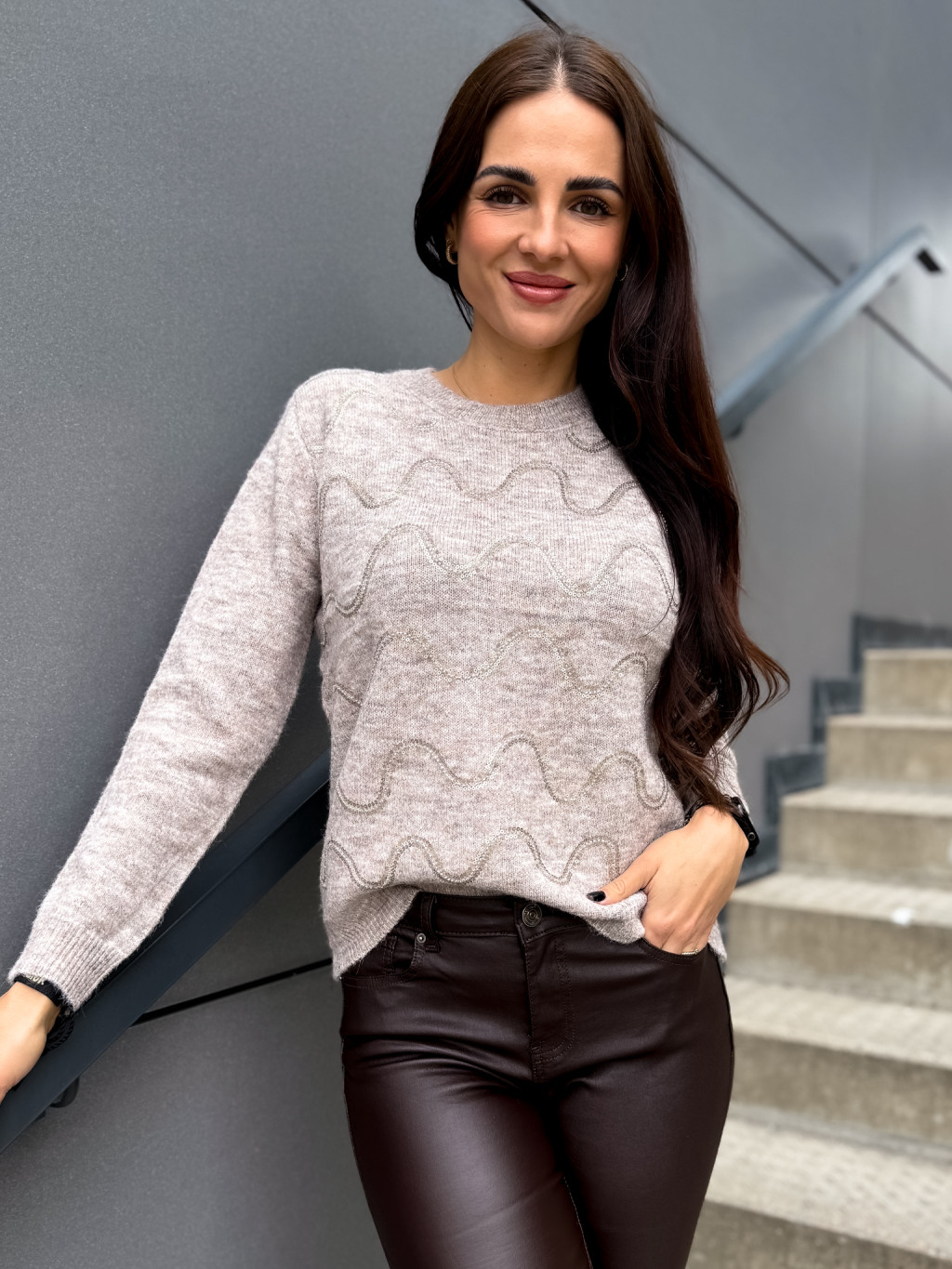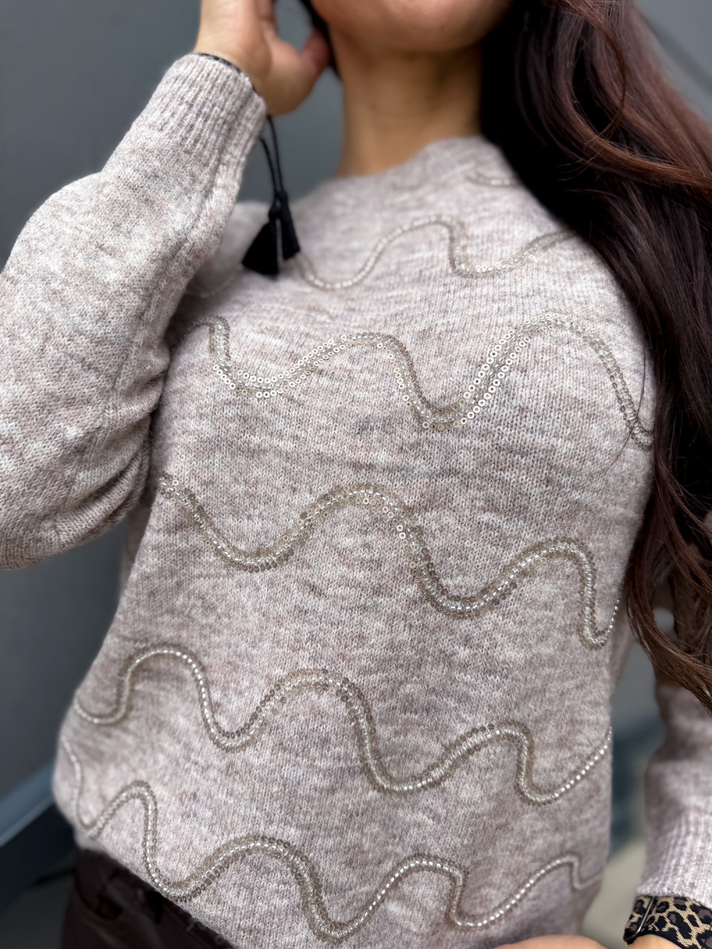 Elegantní dámský svetřík s flitry, jemný žíhaný vzorek, velmi pružný, vel. unisize - sedí na S, M a L.