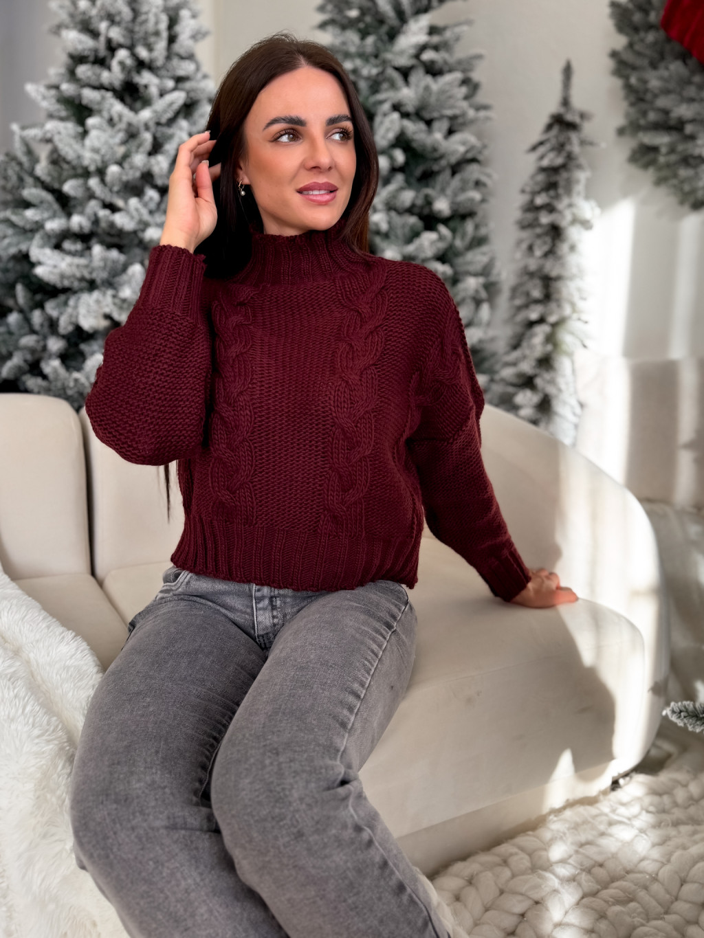 Elegantní dámský svetřík se stojáčkem u krku, rozšířené rukávy, velmi příjemný a teplý materiál. Vel. unisize - sedí do vel. M. Prsa - 2x 55 cm. Délka 40 cm. Výška modelky 170 cm. Materiál: 85% polyamid, 10% viskoza, 5% polyester.